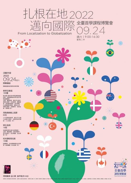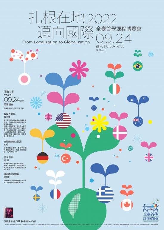 主旨:有關臺南市政府教育局辦理全臺首學課程博覽會─「2022 扎根在地·邁向國際」一案,請貴校踴躍現場或線上參與,請查照。