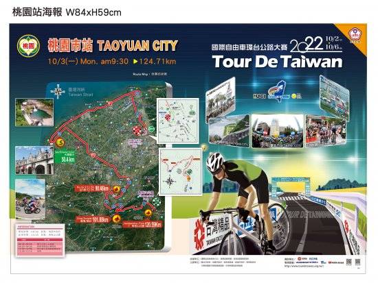 2022 國際自由車環台賽-桃園市站訂於 111 年 10 月 3 日假市府前廣場登場,將有來自世界各國的菁英隊伍參賽,途經本市桃園、蘆竹、大園、觀音、新屋、楊梅、平鎮、龍潭、大溪及復興等 10 個行政區,歡迎您於競賽沿線為選手加油。詳情請至賽事官方網站(http://www.tourdetaiwan.org.tw/)或「Tour DeTaiwan 國際自由車環台公路大賽」facebook 粉絲專頁查詢。