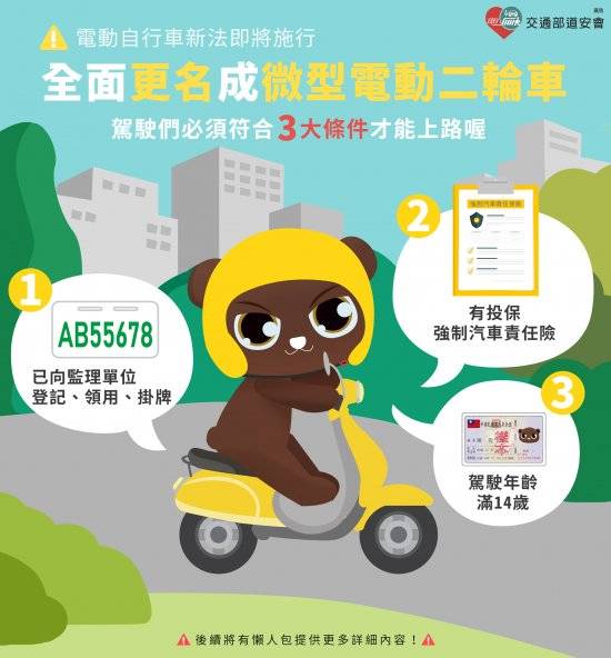 微型電動二輪車預定於 111 年 11 月掛牌納管,請貴校協助利用公佈欄、官網、粉絲專頁等管道加強宣導。