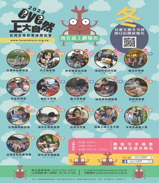 | 三、 | 2023 寒假兒童生態冬令營活動網址為 https://www.lovenature.org.tw/,歡迎線上報名。 |