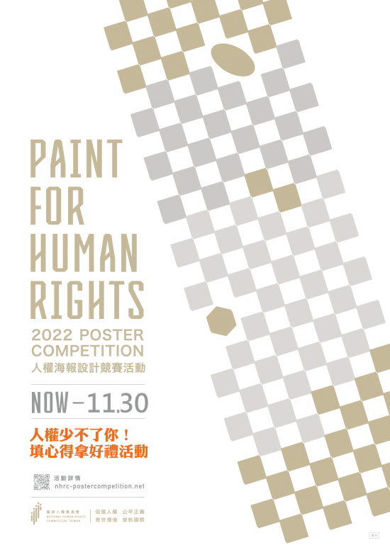 | 三、 | 活動詳情請至「2022 年人權海報設計競賽活動網站」(網址: http://nhrc-postercompetition.net/)/人權少不了你!項下查詢或撥打 02-25051180 分機 790 人權海報設計小組洽詢。 |