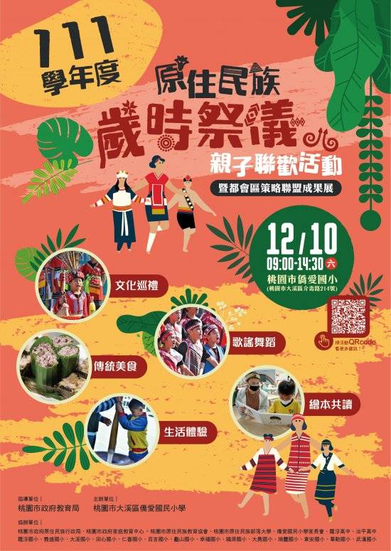 主旨:有關桃園市大溪區僑愛國民小學(以下簡稱僑愛國小)辦理「桃園市 111 學年度學生原住民族歲時祭儀親子聯歡暨都會區策略聯盟成果展」活動一案,請踴躍參與,請查照。