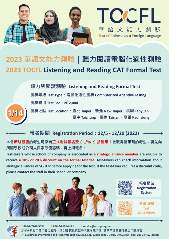 主旨:轉知國家華語測驗推動工作委員會辦理「華語文能力測驗」112 年 1 月正式考試事宜,請協助公告周知並鼓勵踴躍報考,請查照。