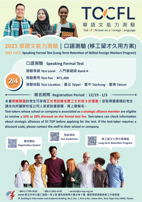 主旨:轉知國家華語測驗推動工作委員會辦理「華語文能力測驗」112 年 2 月口語測驗正式考試事宜,請協助公告周知並鼓勵踴躍報考,請查照。