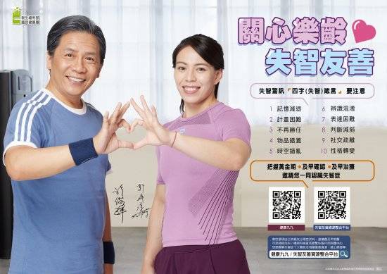 | 二、 | 為提升國人對失智症正確認識,注意可能罹患失智之十大警訊,即時發現與及時診斷的重要,進而能發揮同理與包容、關懷在社區生活的失智者及其家屬,共同營造失智友善的社會。該署特邀請奧運金牌得主郭婞淳小姐及藝人許傑輝先生以輕鬆詼趣方式拍攝微電影及宣導海報。影片及海報均公開於該署健康九九網站及失智友善資源整合平台,請協助廣為宣傳及推廣。 |