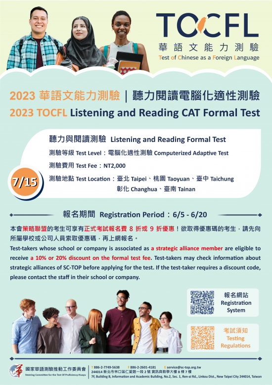 主旨:轉知國家華語測驗推動工作委員會辦理「華語文能力測驗」112 年 7 月正式考試事宜,請協助公告周知並鼓勵踴躍報考,請查照。