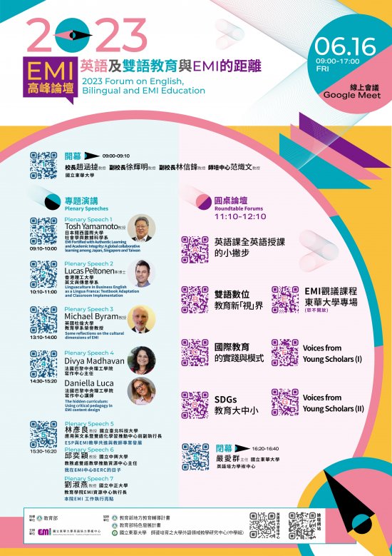 主旨:函轉國立東華大學英語培力學術中心辦理「2023 EMI 高峰論壇:英語及雙語教育與 EMI 的距離」,請查照。