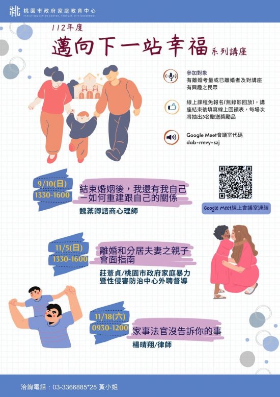 );另倘有家庭教育個別化服務需求,可撥打 4128185 諮詢專線或申請小桃家線上諮詢室(