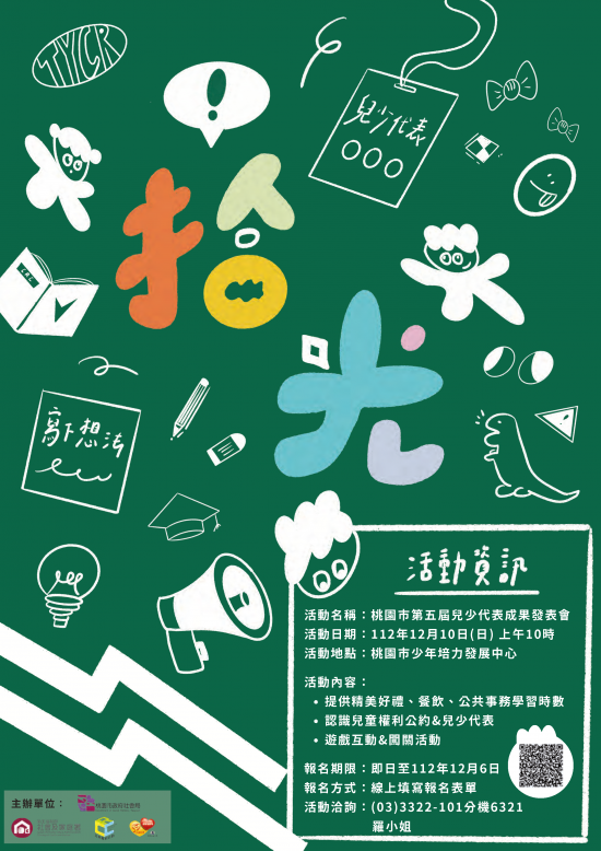 | 六、 | 本活動如有相關問題,請洽本府社會局兒童及少年福利科,羅專案人員,電話: 03-3322101 分機 6321 。 |