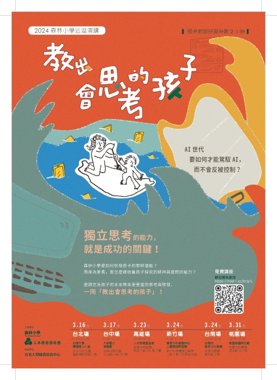 一、 | 本會為為推廣教學理念及分享教學成果擬於今年(113 年)三月間,以「教出會思考的小孩」為主題,進行全國六場免費巡迴演講,為台灣教育做出貢獻。 |
