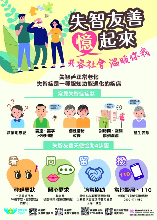 | 四、 | 相關活動資訊如附件,亦可至該局網站( https://dph.tycg.gov.tw/,首頁>業務資訊>健康促進服務>慢性病防治>113 年看見失智友善-線上抽獎活動)查詢。 |