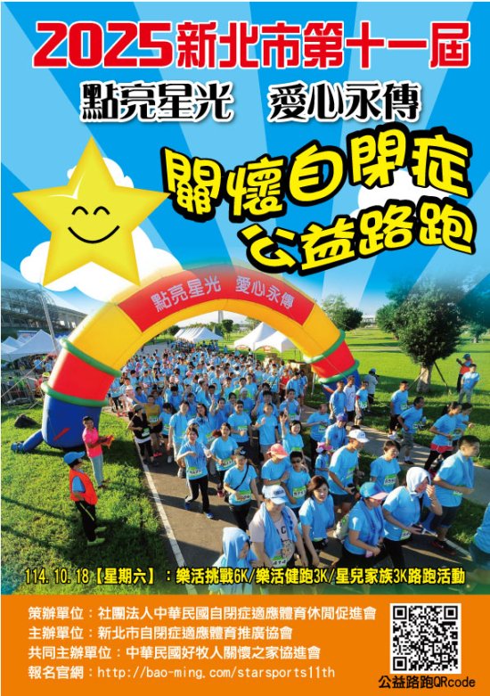 | 2、 | 星兒親子組: 390 元/人〈保證金〉,當天攜身心障礙手冊現場辦理退費〈贈送星兒路跑記念衣及毛巾〉。 |