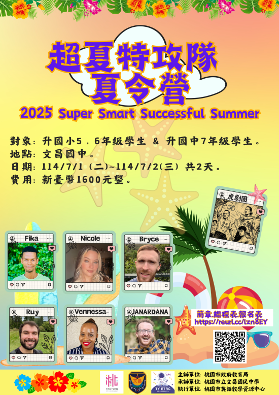 | (一) | 活動時間: 114 年 7 月 1 日(星期二)至 114 年 7 月 2 日(星期三)共計 2 日課程,自每日上午 8 時 30 分至下午 3 時 40 分。 |