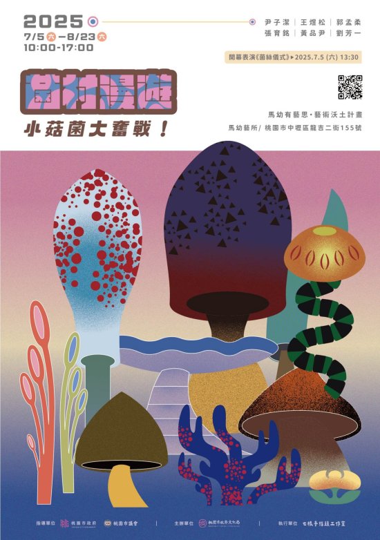 | 二、 | 藝術家共創工作坊:辦理期間自 114 年 6 月至 8 月,課程內容包括「微生物寫生工作坊」、「嗶嗶電波塔工作坊」、「我の菇菇標本工作坊」、「菇菇 Born This Way 工作坊」、「光影魔法屋」等,由展覽藝術家帶領學員一起進行藝術共創,學員作品將有機會於「菌村漫遊」展覽共同展出(詳細內容及報名方式請參閱附件)。 |