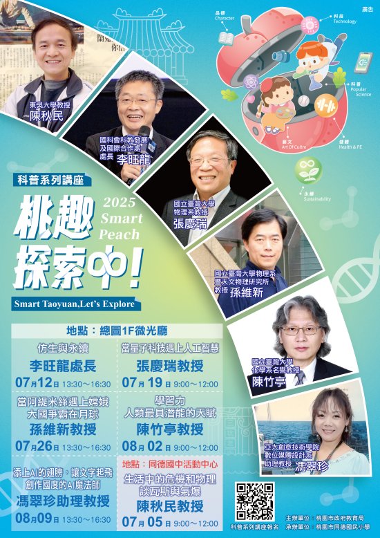 | 2、 | 科普講座: https://www.typl.gov.tw/zh-tw(桃園市立圖書館網頁/最新消息/活動訊息) |