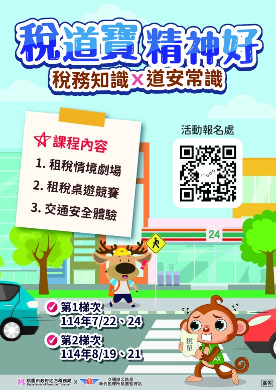 | 一、 | 為加深學生族群對雲端發票及租稅常識之了解,強化交通安全意識,本局與交通部公路局新竹區監理所桃園監理站(下稱桃園監理站)共同合作,以設計租稅服務情境劇場並結合租稅桌遊教具,讓學員於演練及遊戲中學習租稅觀念,另安排至桃園監理站全國首座「交通安全教育園區」,實地感受大型車視線死角及內輪差,希冀藉由活動體驗提升租稅與交通素養,營造守法安全好生活。 |