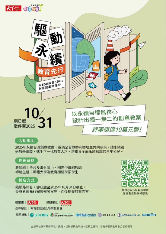 | 三、 | 為促進國際間的教育交流,今年本活動鼓勵海外教師參賽; 並首度開放師培、師資生參與,培養教育新鮮人永續行動力並接軌教育現場,讓更多人投入永續教育的行列。 |