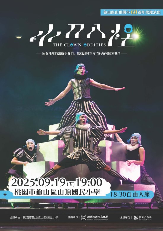 | (八) | 節目介紹:「小丑八怪」節目以「人性」、「快樂」以 及「夢想」作為主軸,結合雜耍、疊羅漢、高空表演等馬戲肢體藝術以及詼諧的互動方式,呈現一群來自 EYECATCHING 星球的小丑們因時空錯亂來到名為 TW 的星球的有精彩故事,一同度過難忘有趣的馬戲之夜。 |