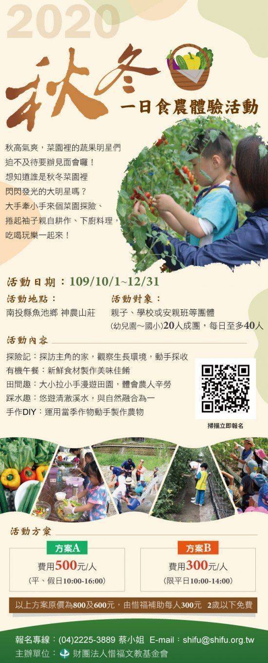 主旨:函轉財團法人惜福文教基金會辦理「一日食農體驗活動」一案,請查照。