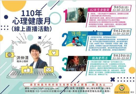 | 3、 | 第 3 場: 110 年 9 月 19 日(星期日) 21 時 30 分至 22 時 30 分影片我,為愛而活。 |