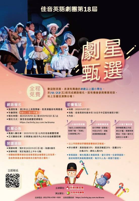 (三)甄選對象:具2年以上英語學齡,對表演藝術有興趣之國中小學生。