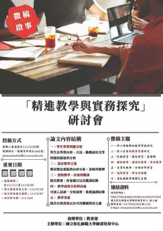 五、檢附徵稿公告1份,詳情請至本研討會網站查詢(https://sites.google.com/gm.ncue.edu.tw/tpr3/)。