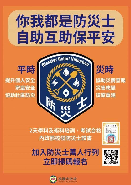 訊息轉知:送本府「防災士培訓課程海報」1份,請貴校(園)鼓勵所屬人員參與防災士培訓課程資訊