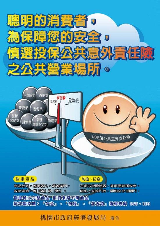 請慎選投保公共意外責任險之公共營業場所,以保障生命、身體、財產安全